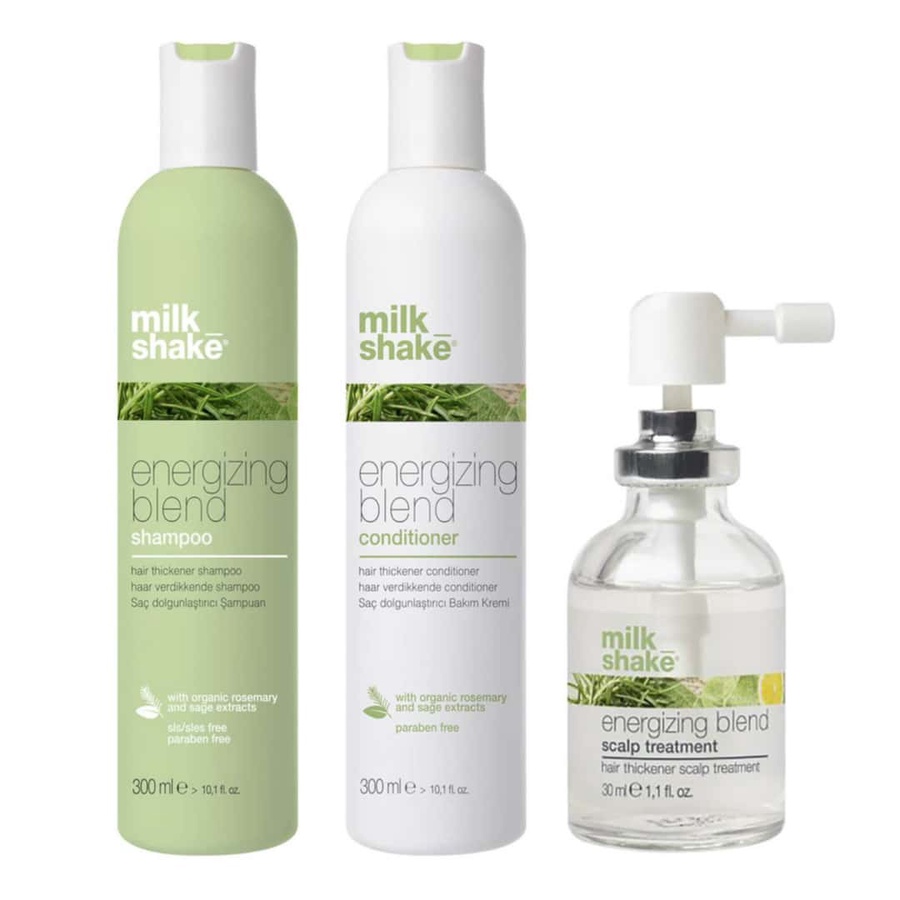 milk_shake Energizing Blend مجموعة تنشيط وتكثيف للشعر الخفيف والمتساقط، بتحفّز فروة الراس وتدعم نمو صحي وكثافة أوضح مع شامبو + بلسم + علاج مركز.